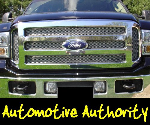 This is a Brand New 6 piece chrome like plated mesh grille insert kit. This grill will fit all Ford F-250 models from year 2005-2007. This mesh grille insert is for the upper grille. Note: This is not to replace your factory grille, it is simply an insert to change the current look of your car because this grille is simply an overlay. Therefore if you do not have the same front end as the picture this will not work. The mesh grille insert will attach straight on top of your factory grille using the provided wiring harness. The mesh has a diamond style pattern. This is very popular in the automotive scene. The mesh will not restrict airflow into your engine. The diamond mesh pattern has opens of 1/4" by 3/8". The mesh is a 20 gauge material meaning that it is strong yet it is also pliable making this a great product to work with. The mesh is a chrome 'like' mesh because it is not true chrome but is resembles it because of the shinny finish.