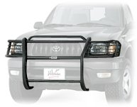 Westin Sportsman 1-Piece Grille Guard provides a customized look and front-end protection for trucks and SUVs. It is designed specifically for each vehicle model with applications that feature a drill free installation. It utilizes existing holes on the vehicle's frame for superior strength with minimal vibration. This black finish grille guard offers maximum rust protection and a brilliant finish even in the harshest climates. The light guards are removable for easy headlamp access.